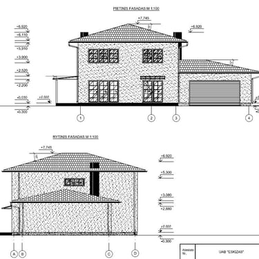 Braižome/perbraižome -(pastatų aukštų planus, fasadus, išklotinės ir pn.)